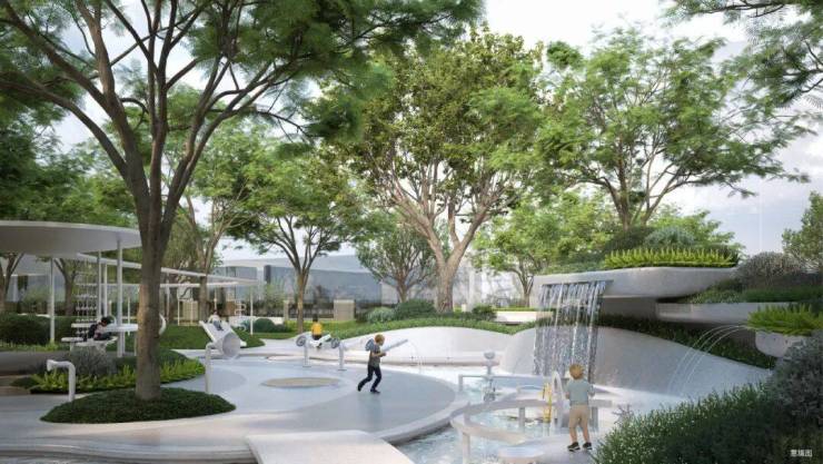 七境:规划打造酒店式落客环岛与商业街区、仪式水院、共享空间、儿童天地、户外营地、全龄活动区、疗愈花园等多元丰富的景观场景与活动空间。