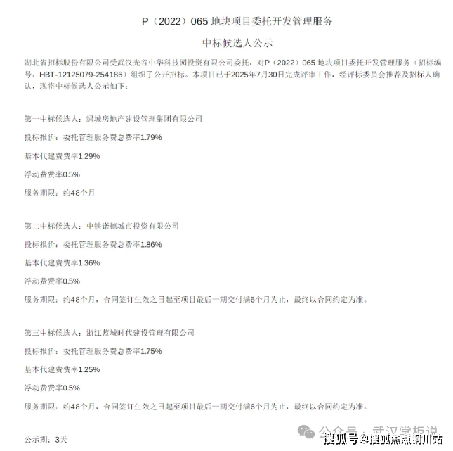 近期,P(2022)065地块项目委托开发管理服务中标候选人公示,第一中标候选人为绿城房地产建设管理集团有限公司。