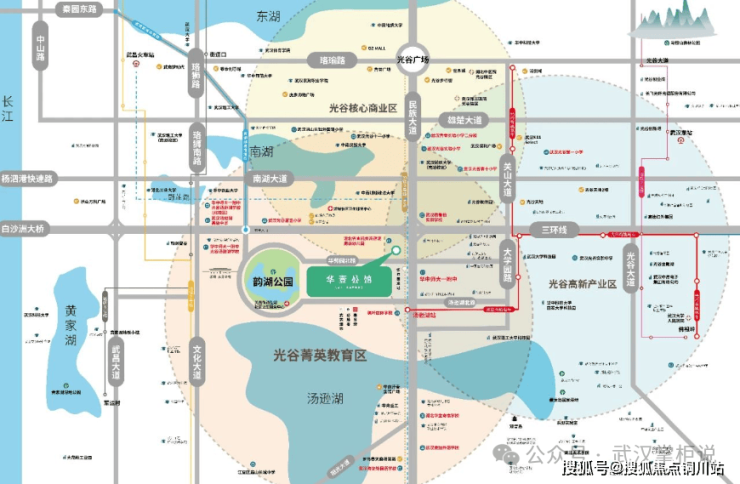 从地段来看,项目位于韩杨路与科技四路交汇处,紧邻武汉新城中轴线,北靠梨山的自然生态,临近武汉外校新城校区,属于光谷科学岛1平方公里起步区核心。