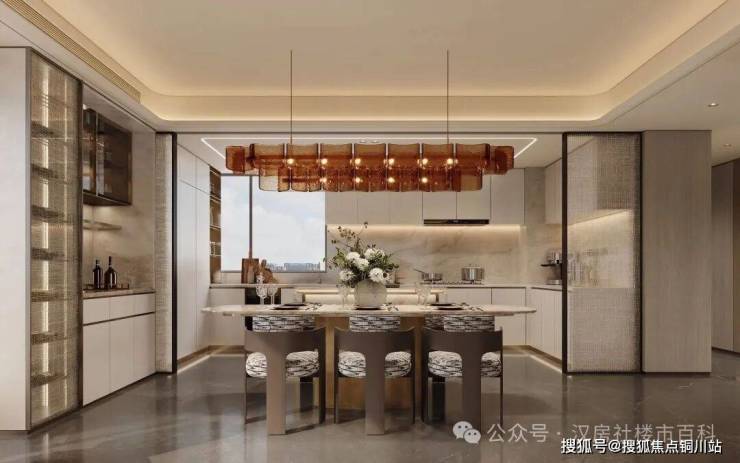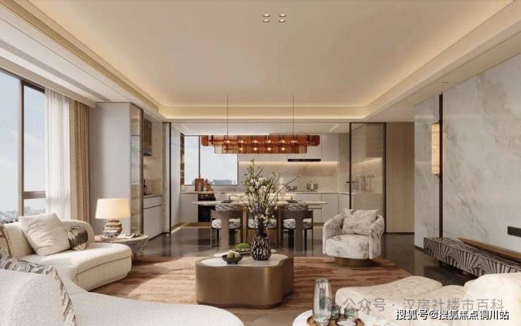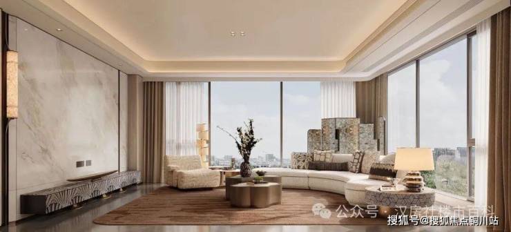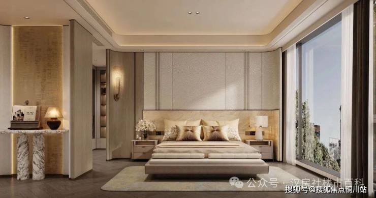 该户型位于2 号楼,是典型的大平层豪宅结构,餐厨、客厅一起,客厅 270° 全景舱观景和采光兼顾。四个卧室在南北向各有两个,主卧大套房以及主卫全朝南。唯一的缺点就是只有2 个卫生间。