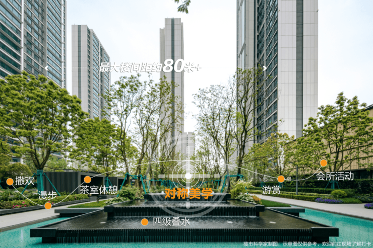 以中央水景为中心,两栋楼之间串联起撒欢、漫步、茶室休憩或是游赏以及会所活动等一系列丰富的活动场景,想释放卡路里还是陪着孩子遛弯亦或是放空,总有你的一方小天地。