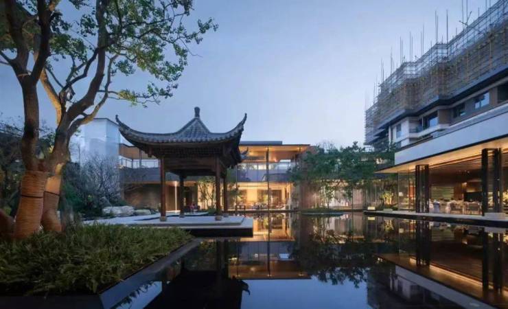点睛之笔是,水院内有5株形态各异的特选乌桕,及老木材、纯手工打造的“暗香亭”,尽显雅致。