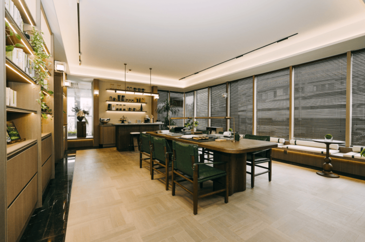 围绕庭院,分庭而落九大功能盒子,包含学习、健身、茶室、欢聚等丰富多元的社交属性。