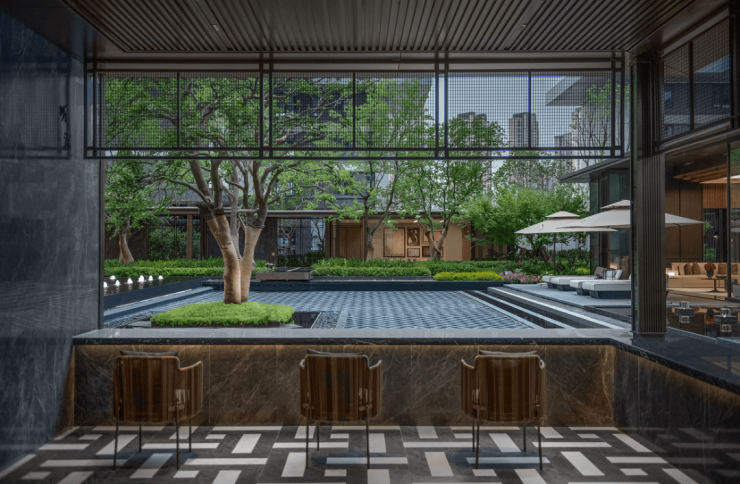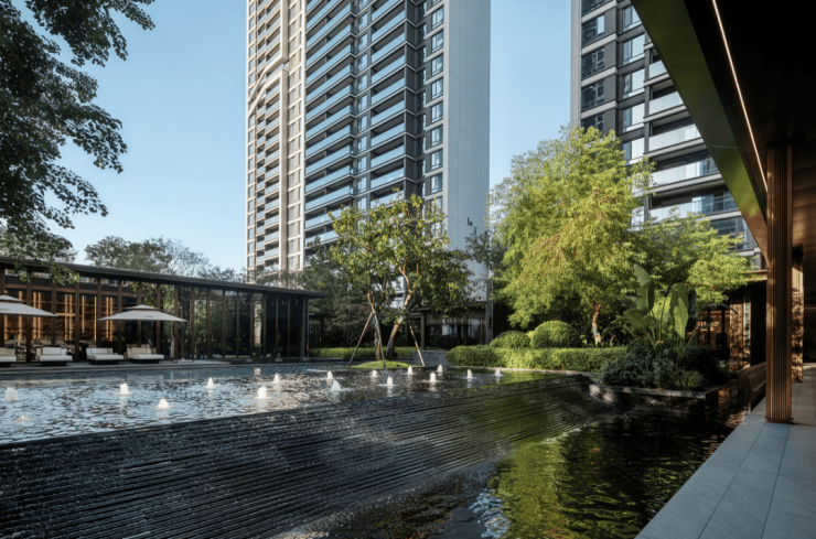 社区园林深谙东方美学精髓,将江南庭院的婉约与当代度假的松弛感相融,乌桕、丛生香樟等全冠移植的绿植,搭配叠水景观、雅致连廊与艺术装置,打造出步移景异的6重疗愈式园林场景。当业主踏入社区,喧嚣被隔绝在外,只剩下家的温暖与安宁。