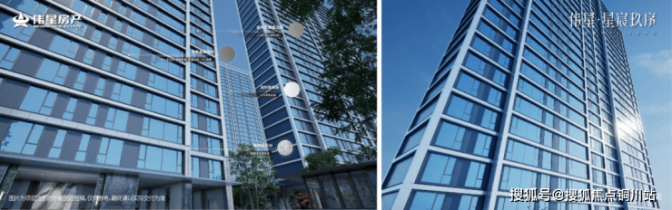 类公建化立面设计,高级灰铝板与南向大面积落地玻璃窗,配合立体先锋的剪裁设计,数倍的铝板用量,定制开模的金属线条,勾勒建筑丰富层次感 ,为中轴著极新封面。