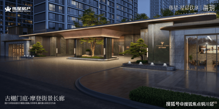 一期大门恢弘大气,高约7米,长约76米,汲取奢华酒店灵感,创新打造中央车站、环岛落客平台。豪宅化高奢排场,吸引高阶圈层一致向往!