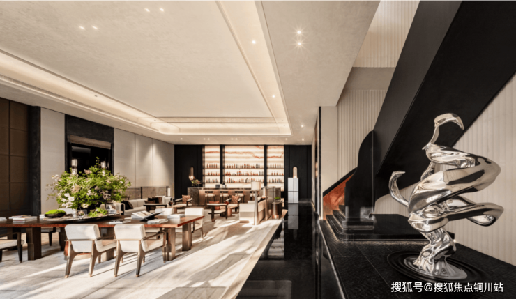 开放式的场景+私人正式的私密空间+功能模块,迎合了塔尖客户对私享场景、对气场的讲究。
