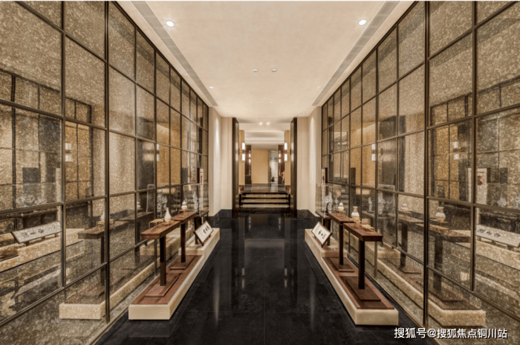 文化细节随处可见,苏式的瓦片(墙面)、屋脊(天花造型)、清波(石材波浪、水纹玻璃)、桂花祥纹、玉雕苏绣、吴门画派的卷轴造型等,打造沉浸式的苏州立体文化博物馆。