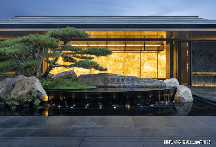 宽约58米的隐贵大门,太行山的黄金石与迎客油松矗立门前,一整面进口潘多拉奢石打造的透光照壁,带来极强的艺术冲击力,散发豪宅应有的领地感。