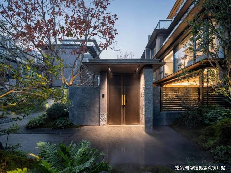 琨悦廷的墅区院门以门廊的模样,展现独特的建筑风格。现代隐奢的南北立面与高墙大院的私密空间,真的进一步增强了墅区生活「庭院深深深几许」的层次感。