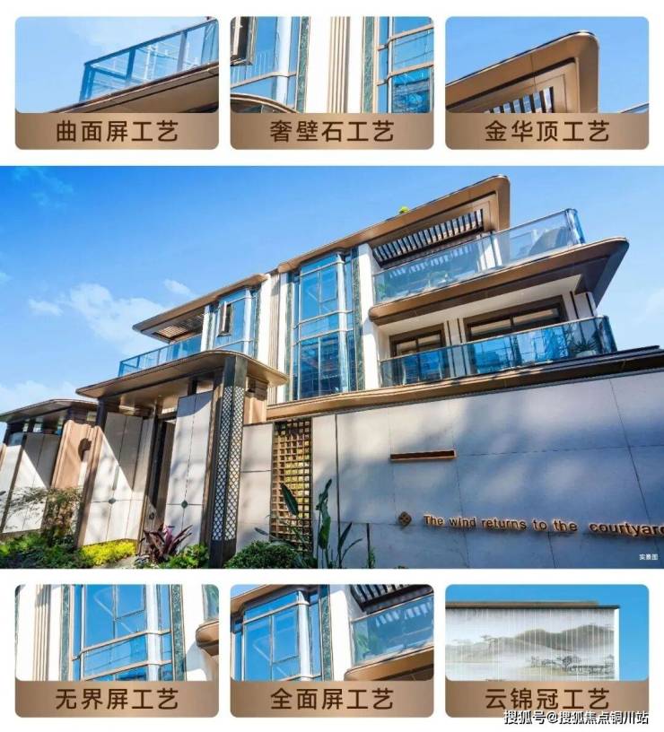 产品营造上,春悦满庭以曲面屏工艺等六大创新工艺,重新定义院墅美学:大面积LOW-E落地玻璃窗让空间通透如自然延伸,香槟金铝板勾勒的建筑线条搭配金属挑檐,将现代感与奢逸感融合。