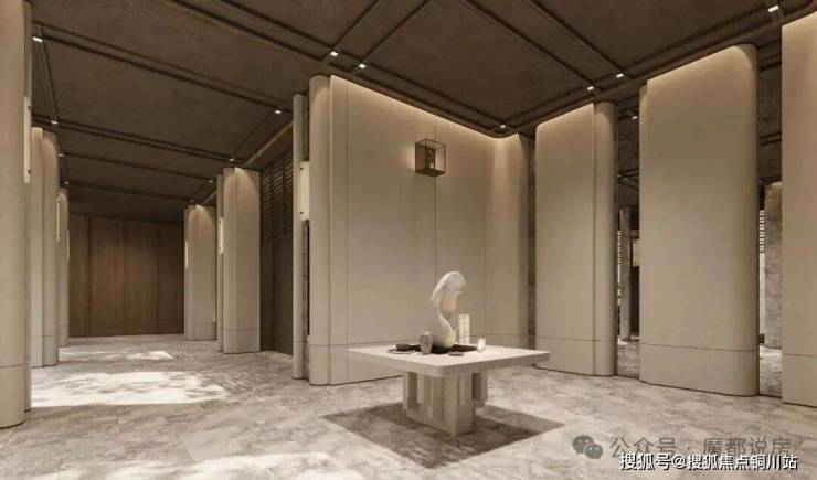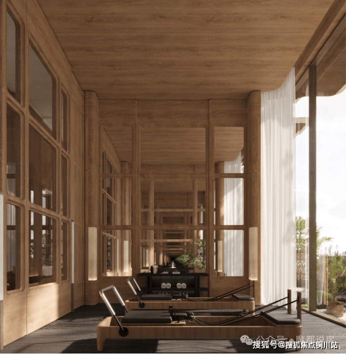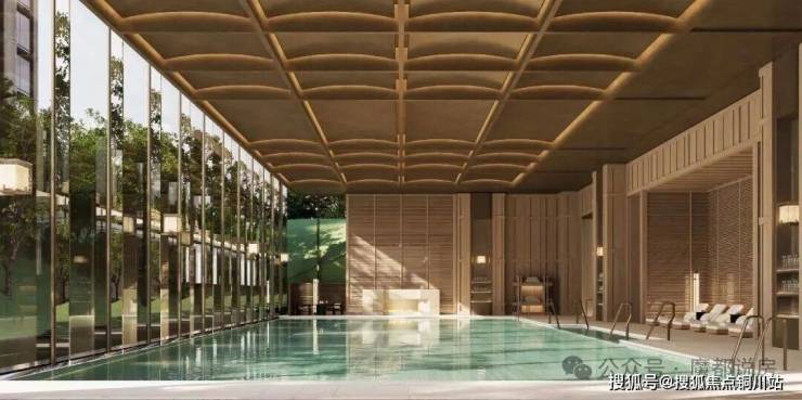 “回归之境”以3500㎡下沉水苑为核心,汇聚会客、泳池、茶室等多功能空间,形成仪式感十足的社区舞台。