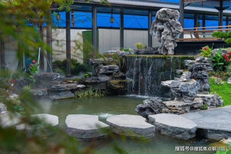 曲香廊串联亭榭,飞桥汀步点缀跌水