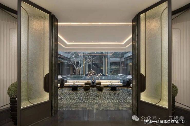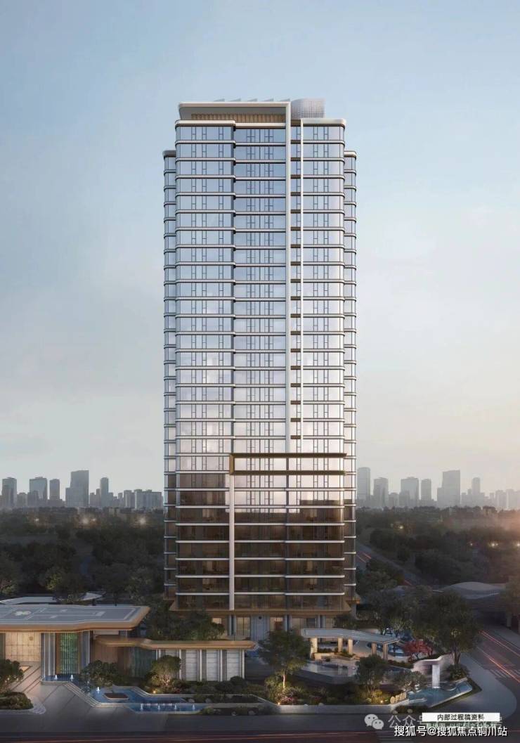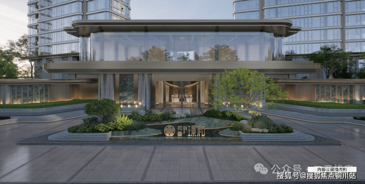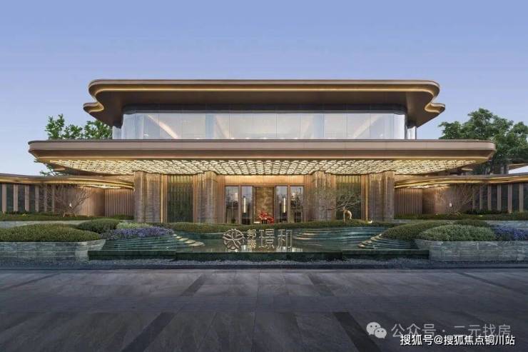 项目的外立面是公建化外立面,做了香槟金色的弧形线条,采用了大全景玻璃,颜值确实很高。