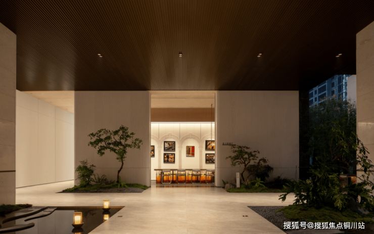 售楼部 以「澍·前序」为主题的玄关,是心理过渡的阈限空间。设计团队刻意压低了入口的视觉重心,利用光影的明暗对比,完成从喧嚣都市到静谧场域的心理切割。