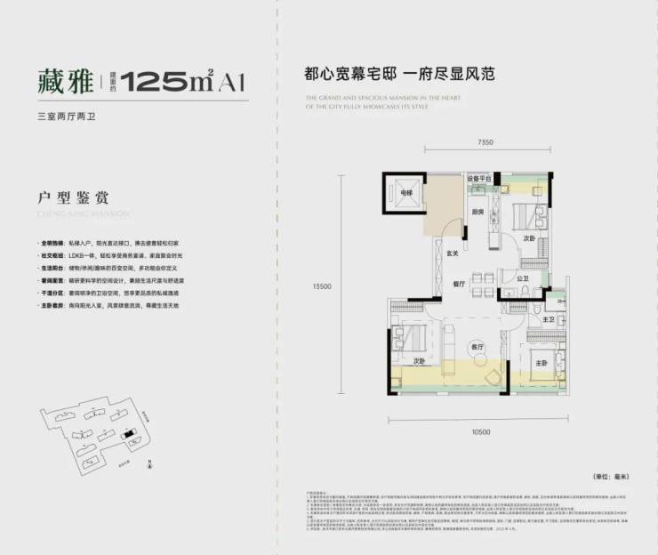 此次,承宁府首开1#和7#,只有两个户型,建面约115㎡和125㎡,均为三房两厅两卫。