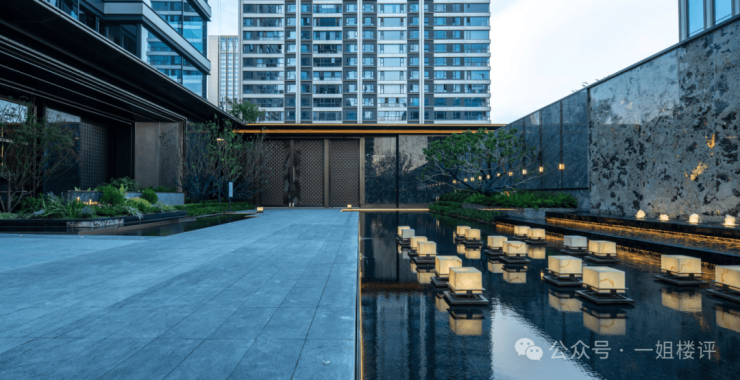 园林景观方面,项目内部有大量水景,层次感和设计感都很足。