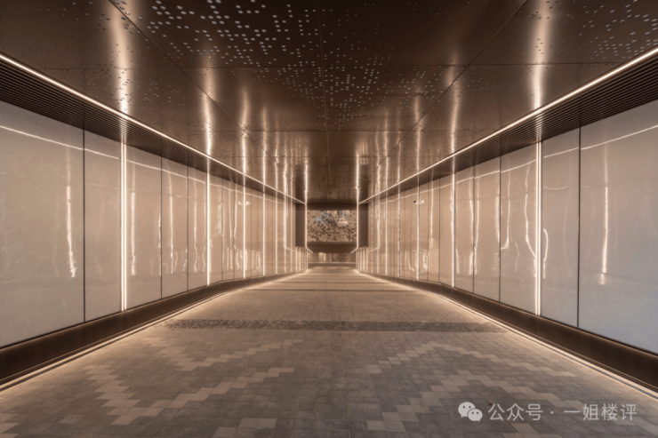 地库坡道墙面选用仿云石亚克力透光板,还规划了星空顶及奢石迎宾墙等。