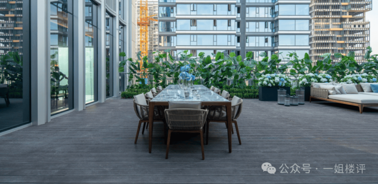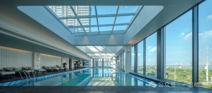 五层是二七滨江首个无界江景景观泳池,还设计了休闲露台、私密宴客厅等,泳池采用无边设计,与长江景观融为一体,休闲露台可放置躺椅、遮阳伞等,私密宴客厅适合业主举办小型私人宴请、商务聚会等。
