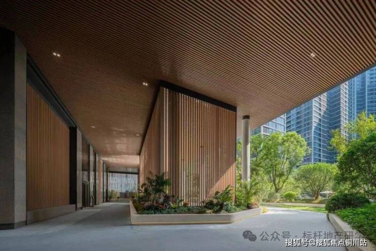 园区入口9米挑高的风雨连廊紧密衔接,无断点覆盖园区内景观,风雨无阻的回家路。悄然徘徊于连廊,将自然引入廊架空间,围炉夜话聆听夜晚的低语,与故事中的人物相遇,在岁月流转中感受诗意相伴。