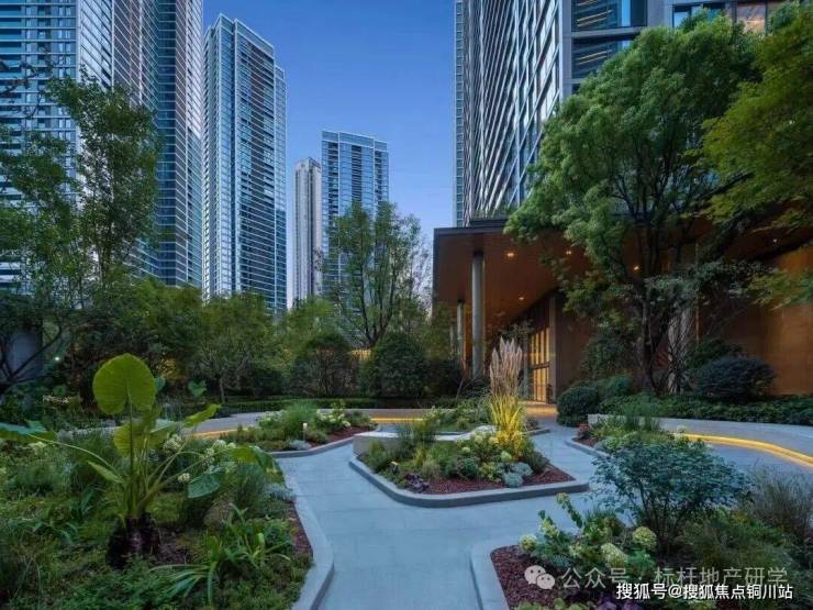 景观则为现代都市度假风格配套,园区绿意与建筑的完美配合,减弱超高层建筑的压迫感,增加园区使用的舒适度,达到居则悦的品质、归则隐的自然,给予客户极致的居住体验。