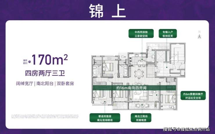 3、高标准户型。143㎡、170㎡平层户型,大面宽、四房设计,不论是功能性还是舒适性都极强。