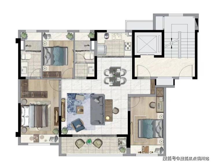 3、室内高标准精装交付,全屋除了配备美的中央空调、新风和地暖系统三大件以外,还将引入新一代美的5M智慧家居系统。