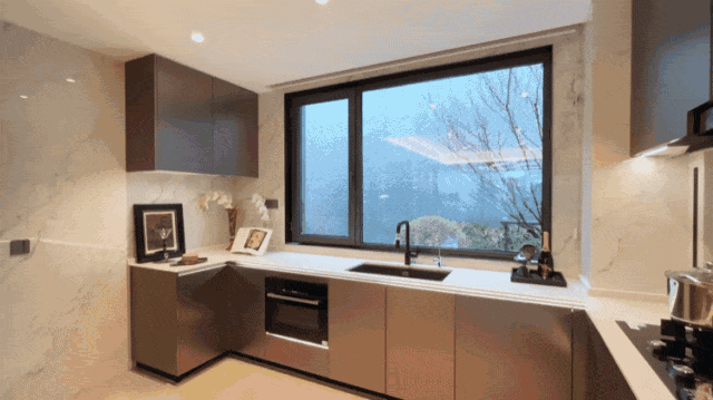 厨房里,有博世高端产品系四件套、贝克巴斯垃圾处理器、花岗岩单槽、霍尼韦尔净水器等,做饭也将成为享受。