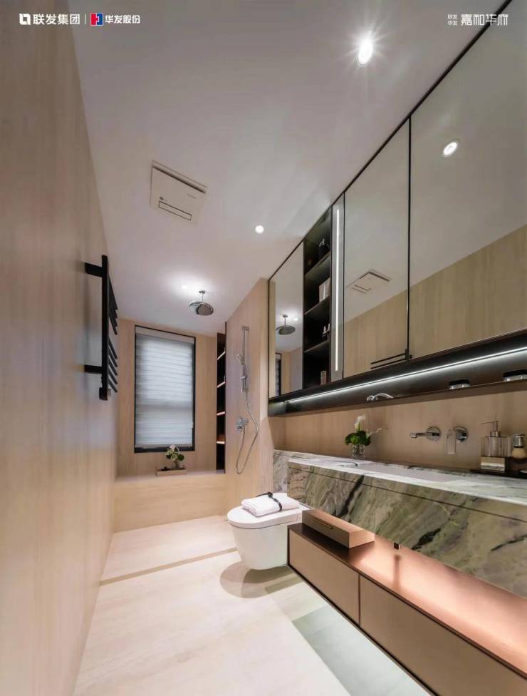 卫生间有高仪、唯宝等大牌,主卫唯宝智能马桶市场价约3万,实打实的品质看得见;主卫加长镜柜,做好活动收纳格,美妆冰箱也准备好。