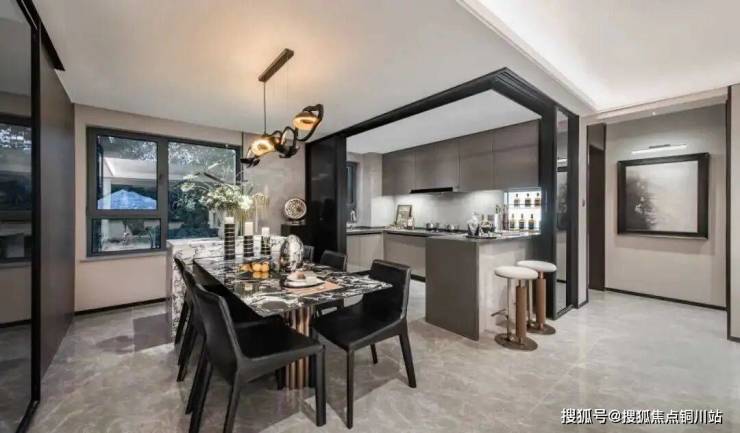 餐厅不占用室内动线,就餐环境更为舒适,半开放式厨房配备有中央岛台,使用更为便捷。