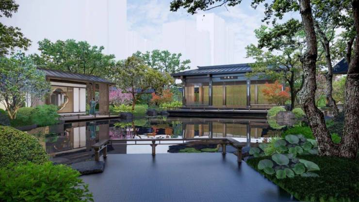 项目在设计理念上独具一格,园林以“一轴四苑八园”为骨架,将晋吴文化精髓凝练于空间肌理之中,通过六进制礼序重构东方空间美学。一幅美景画卷横贯东西,两条游园环线尽享意趣,四苑八园移步异景,造就一番江南景、府苑序、东方境。