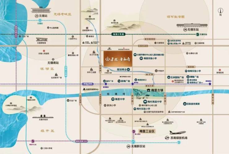 梅村板块作为无锡东拓战略的桥头堡,这里既是省级经济开发区物联网产业集群的承载地,又是吴文化发源地梅里古镇的当代转译样本,千年伯渎河水系与泰伯“三让天下”的精神图腾在此交织。