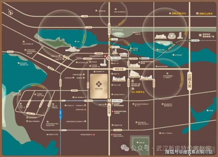 *(招商·缦境揽阅项目区位图)交通枢纽 | 正地铁口,通达全城神龙大道、东风大道双轴贯通,迅捷连接汉口、汉阳主城;地铁3号线沌阳大道C出口(直线距离仅约100米)地铁6号线东风公司站(直线距离约900米),车都T1有轨电车(直线距离约150米)三轨驰骋通达全城。*(数据统一来源于百度地图)