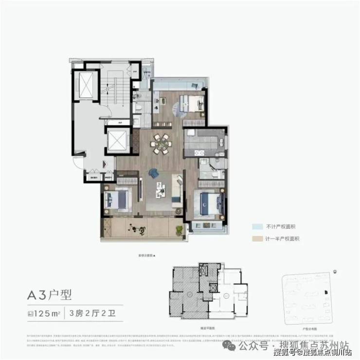 125平 三房两卫户型图