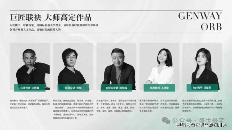 巨匠携手,联袂执笔,以国际前沿美学理念,演绎具备时代精神的美学场域,创见苏州新人文作品,致敬时代的精英人物。
