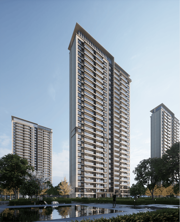 建筑设计:项目整体建筑排布南低北高,高低错落,塑造出沿城市、沿湖的优美天际线,既保证了每栋楼有最大的采光和视野效果,又兼顾了各自的私密性。沿湖为 11 层小高层住宅,建筑朝向分为正南和西南两种,兼顾观湖和采光两种需求。外立面采用类公建化风格,“真石漆 + 局部竖线铝板线条” 的立面材质组合,将现代美学与实用功能完美结合。