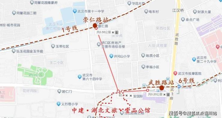 地铁与公交:项目附近有2条地铁经过,最近的是地铁6号线武胜路站,约200米,1号线崇仁路站稍微远一点,直线距离500多米,步行过去估计有700米左右。