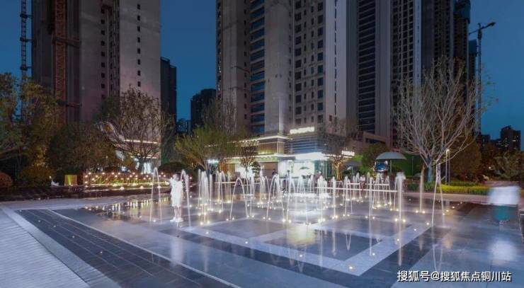 带有华发都荟天地LOGO的迎宾水景,在夜幕初上的时候,显得熠熠生辉,灵动非常。