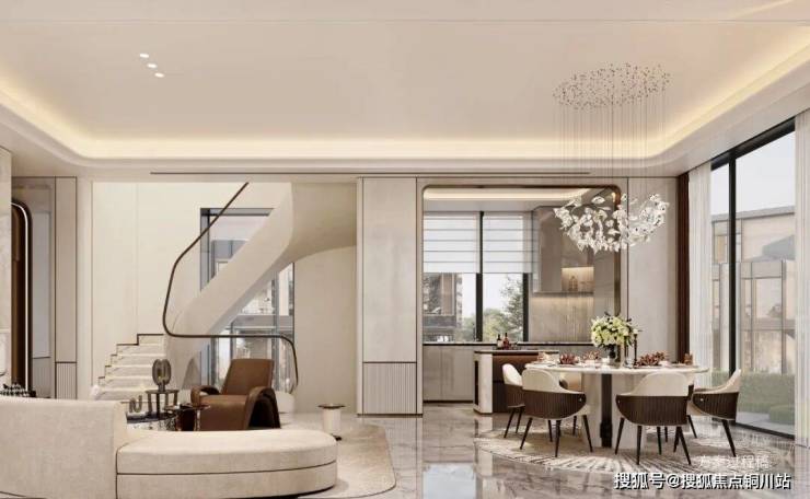 最大约13.75米的面宽,搭配4.1米层高与巨幅落地窗,将“大面宽、短进深”的优势发挥到极致,彰显豪宅的大气之感。