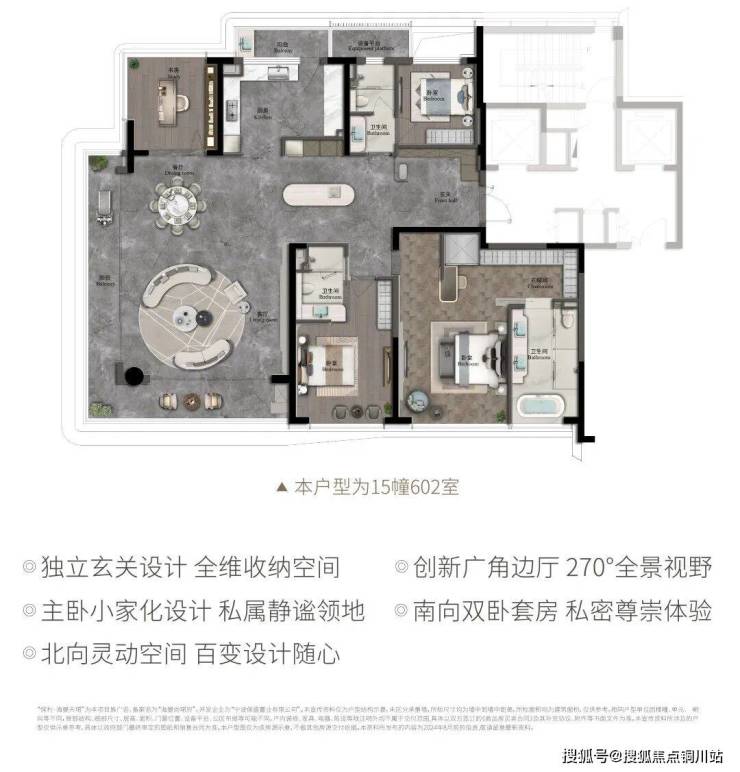 涵盖建面约145-248㎡户型,实现引景框景、270°景观面、少柱少墙大公区,主卧“大家化”、多阳台、多套房的户型设计跨越。