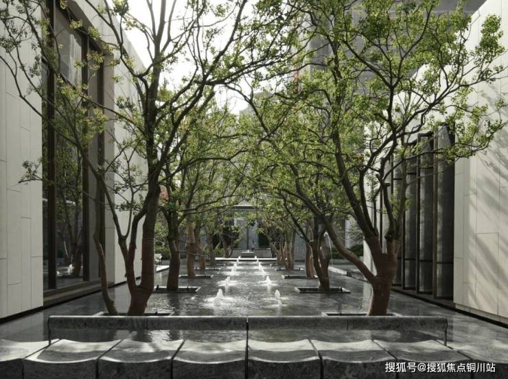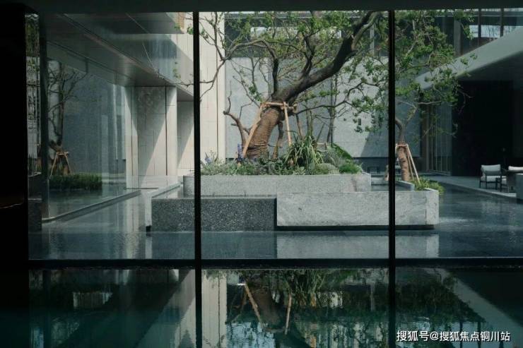 约66米的横向迎宾水轴,12棵特选乌桕漂浮在水面上,展现东方意境的沉静内敛。中心水院设计犹如安缦酒店,水榭会客厅、林下画廊、下沉庭院,叠水、喷泉、镜水,每一处都是一幅美丽的画卷。