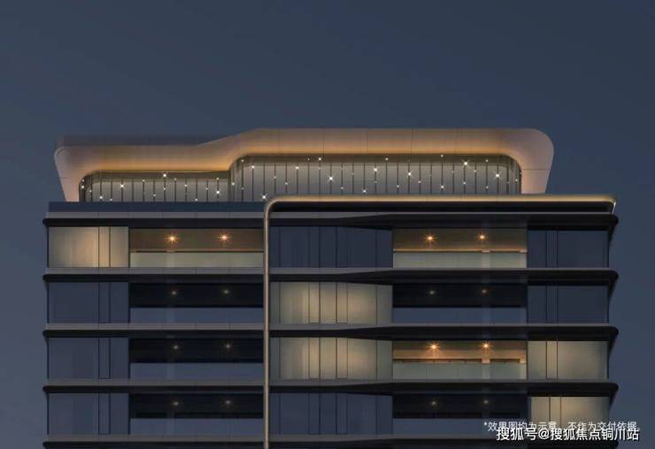 立面公建化立面抛弃了传统的三段式做法,充分融合在地文化立面语言以“向水而生”理念,采用了全通透水晶立面+腰间水波纹铝线条,打造出更符合东方美学的立面和极具漂浮感的层叠挑檐屋顶,实现如春云浮空般的优雅意境。
