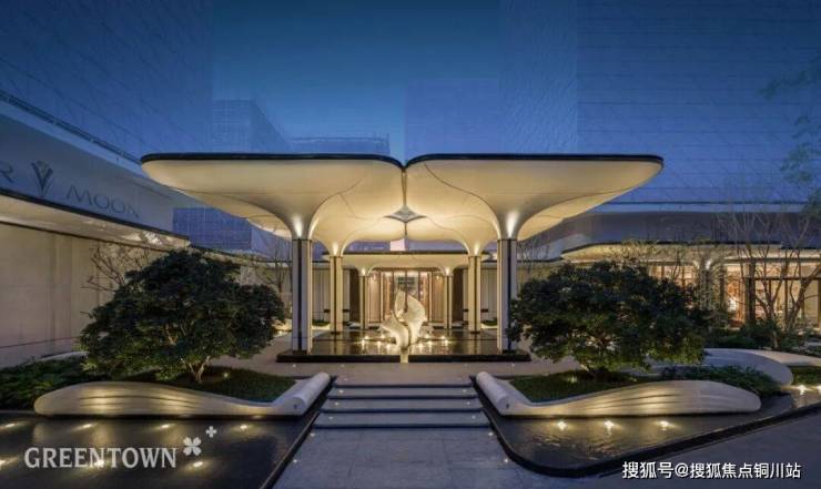 整石切割的门头水景石材、奢石雕刻的电梯厅墙面,以浑然天成的细腻质感,于潜移默化中彰显价值与品位;标志性的芝兰玉树,从2:1到2.6:1进行比例迭新,架空层与街区创新融和,让空间体验更加充满“生息”。