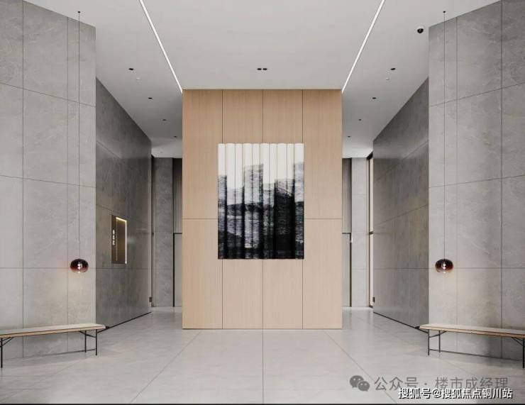 【五星级酒店式大堂】归家的尊荣,精奢入户匹配人物的生活格调。智能电动移门,开启无感通行。