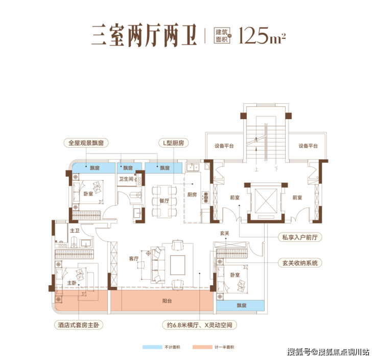 建面约125㎡三房:实现功能与舒适的平衡