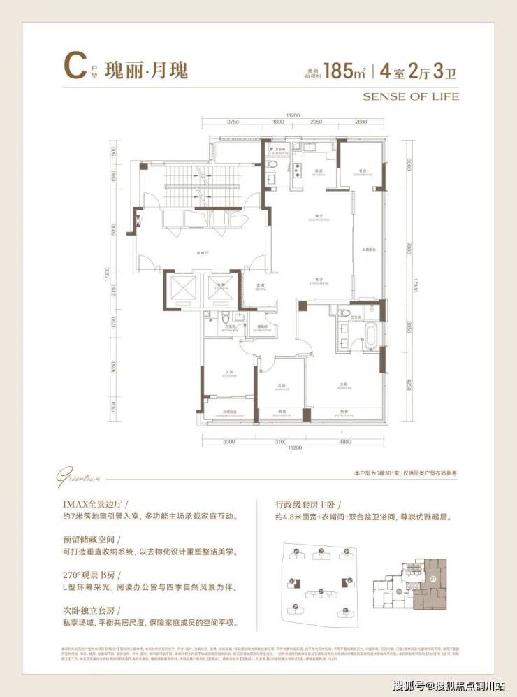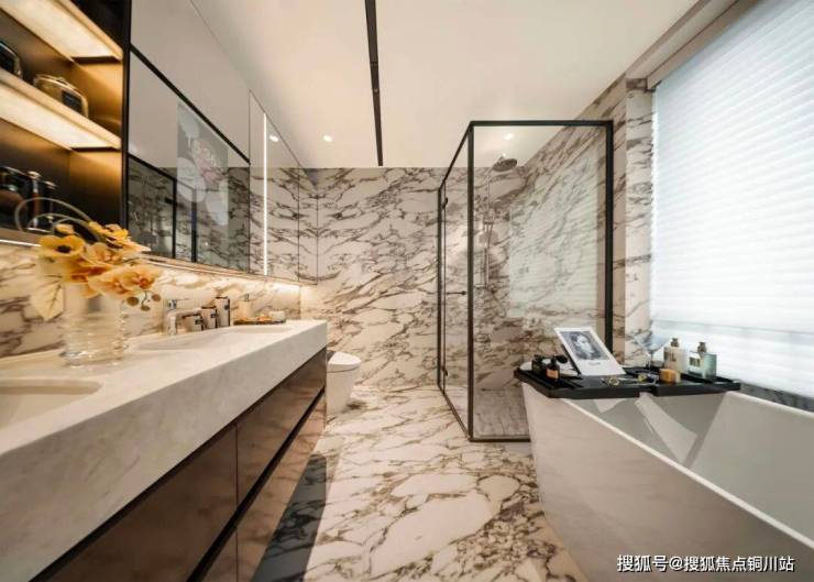 同时,不仅餐客厅有着约7米的落地门窗,书房与主卧还都坐拥270°采光面,任由晨光与暮色在家中流转,也撑起了豪门大宅的自信气场。