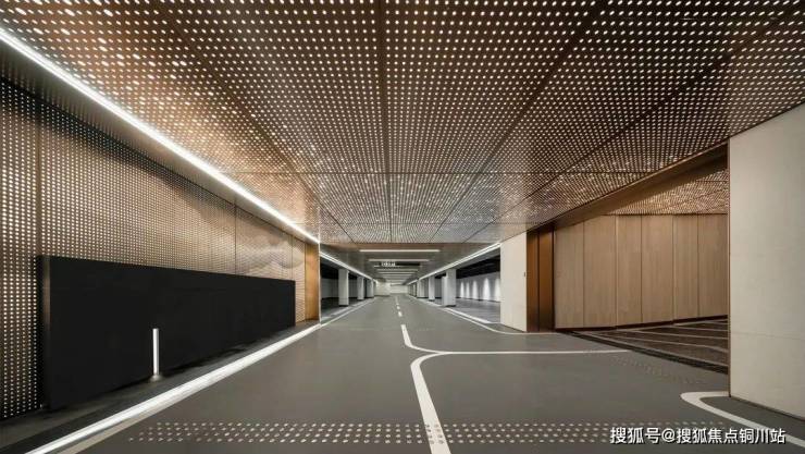 甚至,小区车库的光线经过精心设计-双排鱼骨线灯带,业主归家从自然光过渡到柔和白光,眼睛自然适应,保证视觉舒适度,很细节。