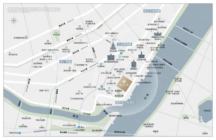 沿江大道、中山大道、江汉路等城市交通主脉在侧,近邻地铁6号线,2号线、13号线(规划中)三轨交汇,武汉长江大桥、晴川桥、武汉长江隧道、武汉长江公铁隧道