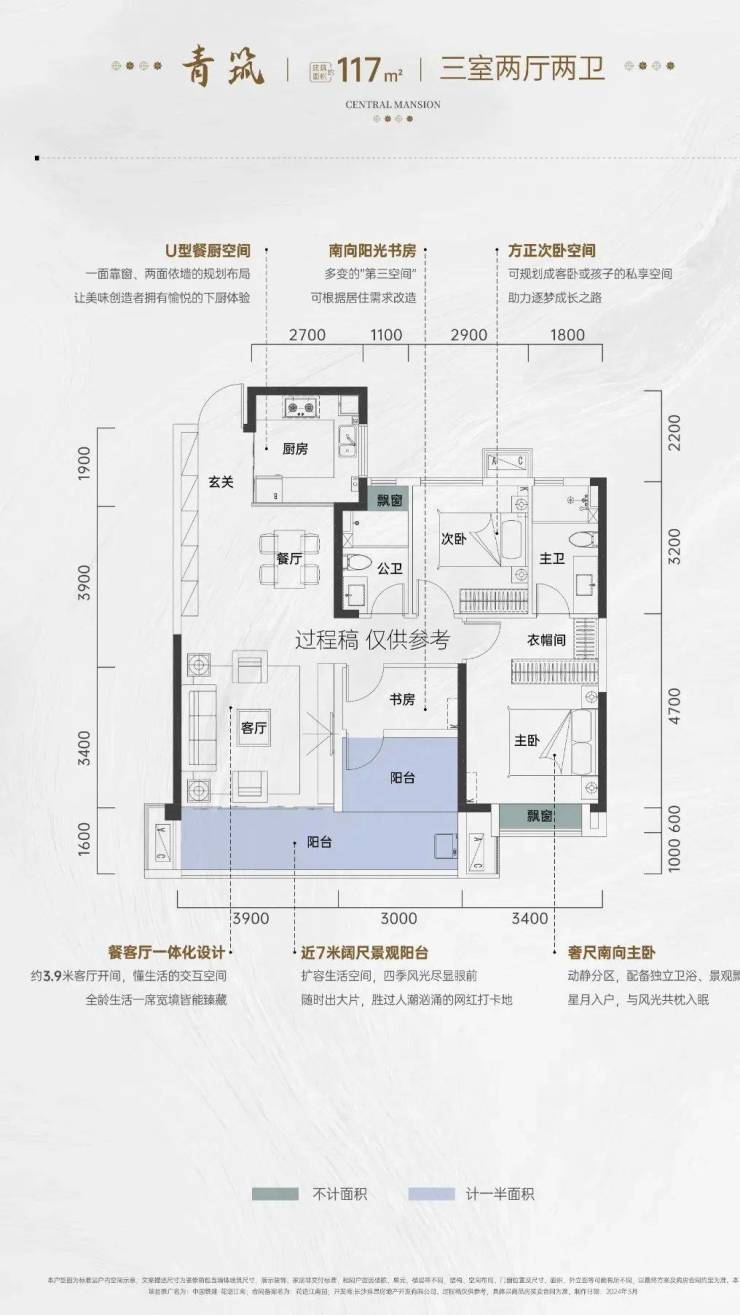 可做大横厅设计,餐客厅连接南向大阳台,宽敞大气;也可以做四房设计,满足二孩/三代同住。
