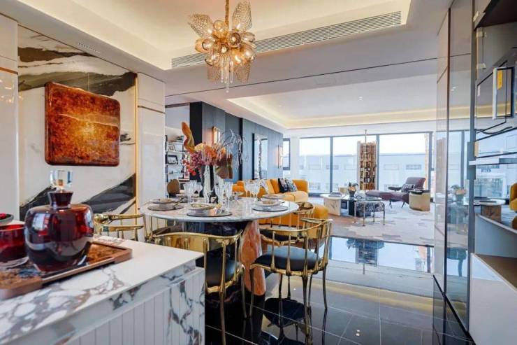 包括公建化外立面,是以三段式结构打造,“真石漆+金属漆+铝板+ Low-E玻璃”的材质对标豪宅,历久弥新。